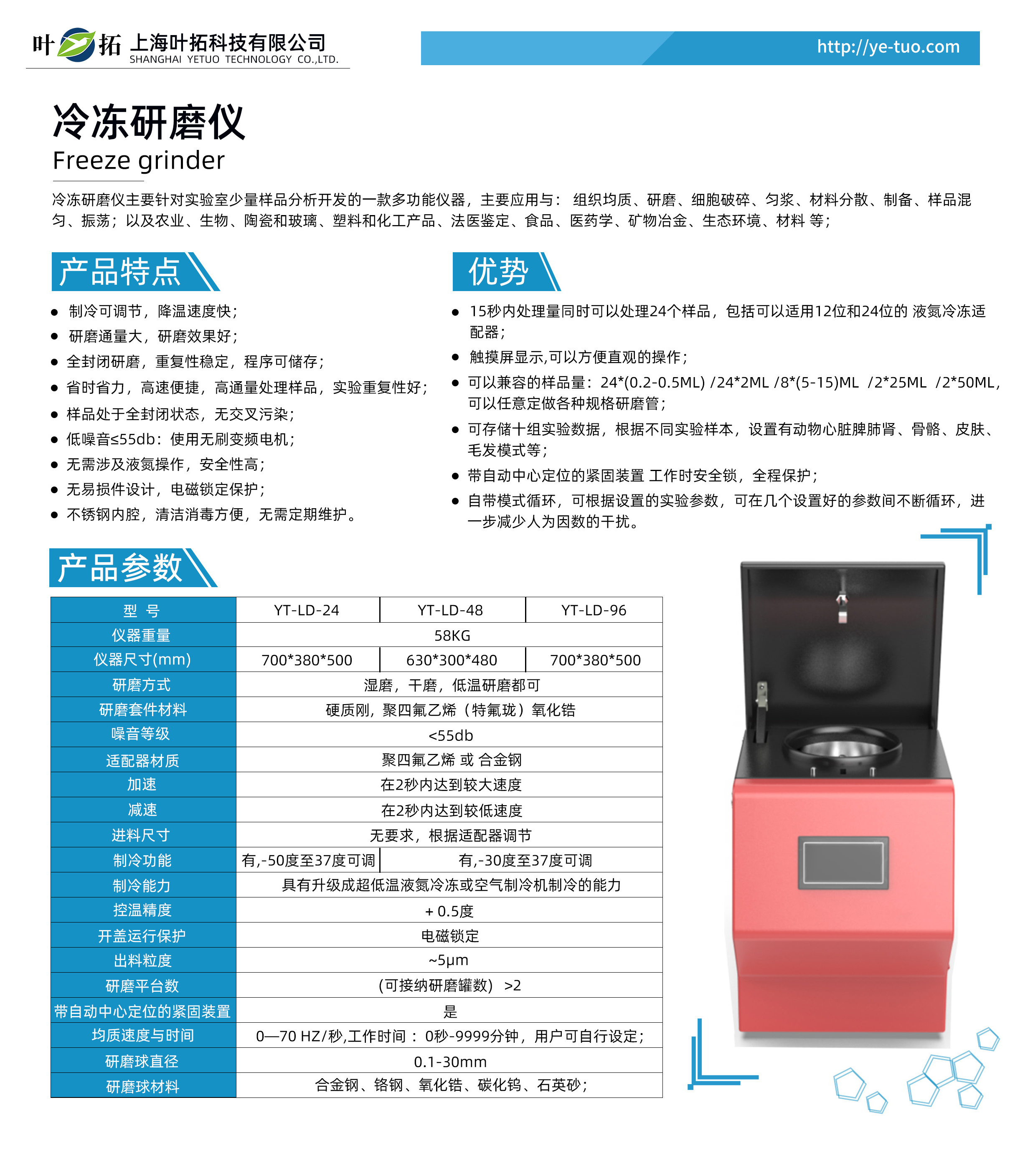 葉拓YT-LD冷凍研磨儀產品特點: